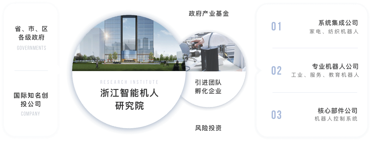研究院依托浙江大學(xué)機(jī)器人研究中心和浙江省機(jī)器人產(chǎn)業(yè)發(fā)展協(xié)會合作的同時,吸收金沙江聯(lián)合資本、之江實(shí)驗(yàn)室等多方位資源,并與聯(lián)盟成員單位及國內(nèi)外其他機(jī)器人研究機(jī)構(gòu)、知名機(jī)器人企業(yè)形成互補(bǔ)合作關(guān)系并取得多項(xiàng)成果,積極打造一個智能機(jī)器人產(chǎn)業(yè)技術(shù)平臺。