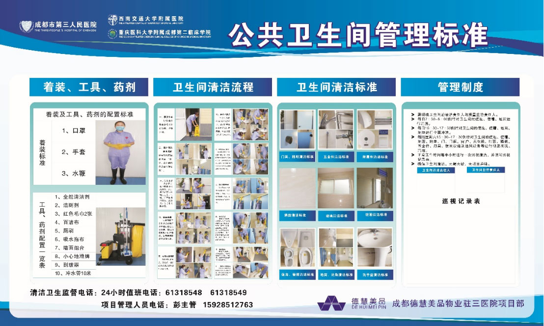 我公司和西安市質(zhì)量技術(shù)監(jiān)督局共同起草西安市《公共廁所管理與服務(wù)規(guī)范》,全國(guó)醫(yī)院企業(yè)唯一僅有的標(biāo)準(zhǔn)體系。1、德慧美品的信息化系統(tǒng)是完