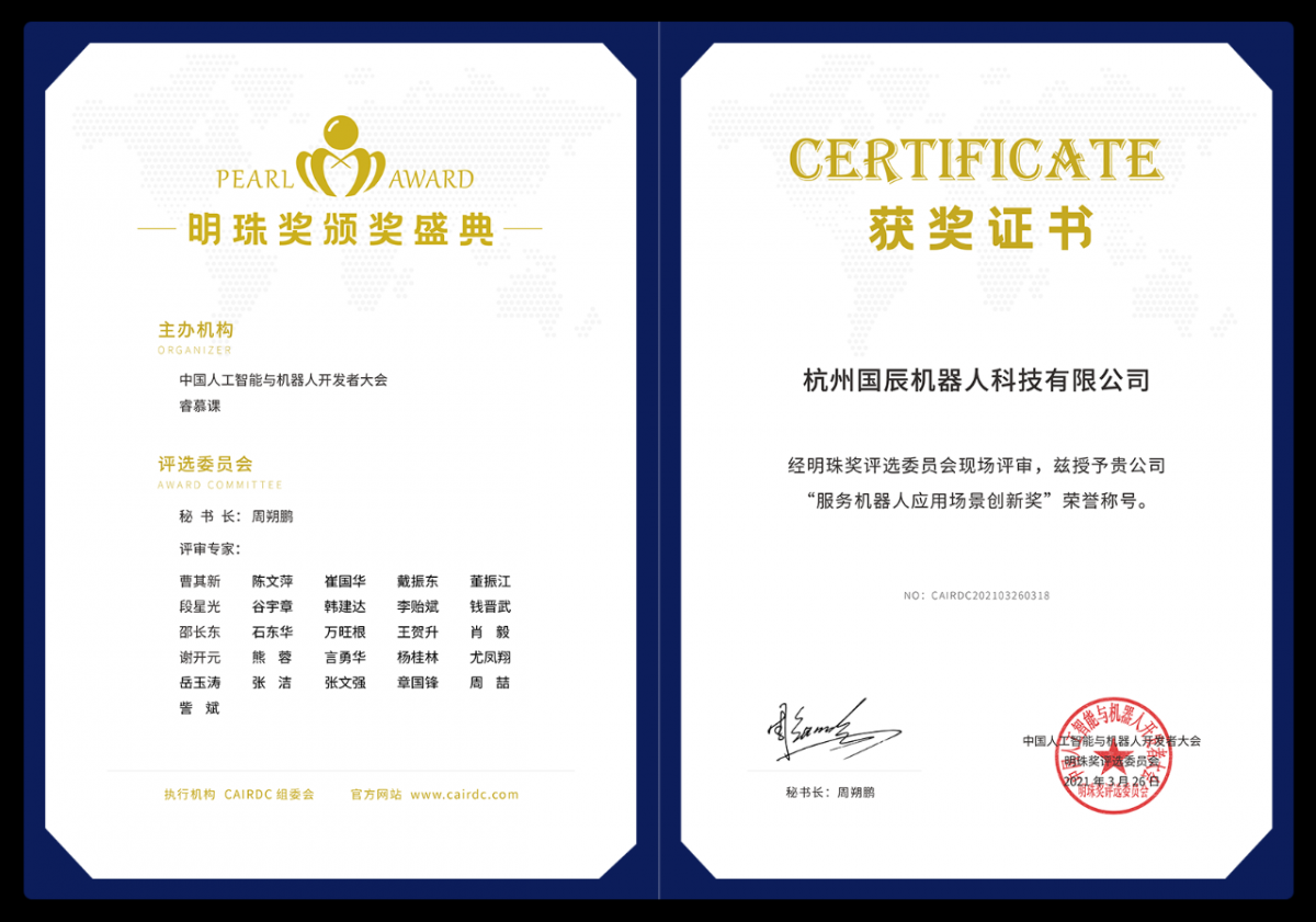 3月26日,第四屆中國人工智能與機(jī)器人開發(fā)者大會暨長三角G60科創(chuàng)走廊洞涇人工智能全產(chǎn)業(yè)鏈大會在上海盛大召開,此次參會總?cè)藬?shù)超1300人,峰會期間,備受行業(yè)矚目的2021年“明珠獎”也在會中正式揭曉,綜合產(chǎn)品技術(shù)創(chuàng)新、品牌實力等多方因素,杭州國辰機(jī)器人科技有限公司于70多家申報單位中脫穎而出,榮獲 “服務(wù)機(jī)器人應(yīng)用場景創(chuàng)新獎”。